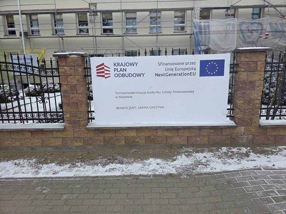 W związku z realizacją projektu „Termomodernizacja budynku Szkoły Podstawowej w Mazewie" objętego wsparciem bezzwrotnym z planu rozwojowego finansowanym ze środków KPO, na podstawie umowy nr KPOD.03.05-IW.04-0153/24 z dnia 22.05.2025 r. na kwotę 1.346.200,00 zł. Planowany koszt całkowity realizacji przedsięwzięcia wynosi 1.671.953,01 zł.